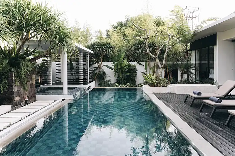 This sun-drenched three bedder boasts an outdoor pool, a separate living quarter and a sheltered outdoor jacuzzi next to a well manicured greenery